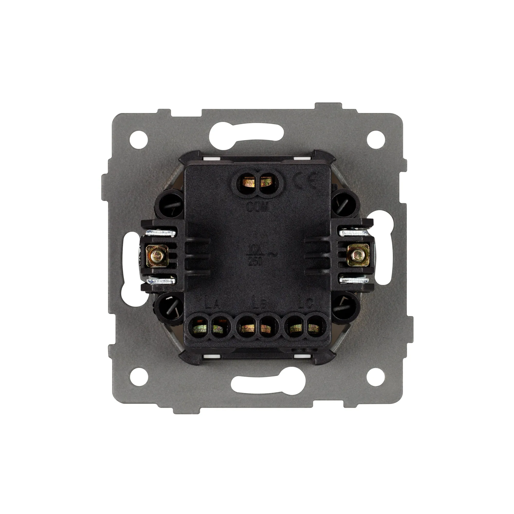 Механизм выключателя света клавишный на 1 пост 3 клавиши (непроходной). Цвет - черный. Без фронтальной рамки. Уровень пылевлагозащиты IP20. Выключатель устанавливается в стандартный круглый подрозетник.