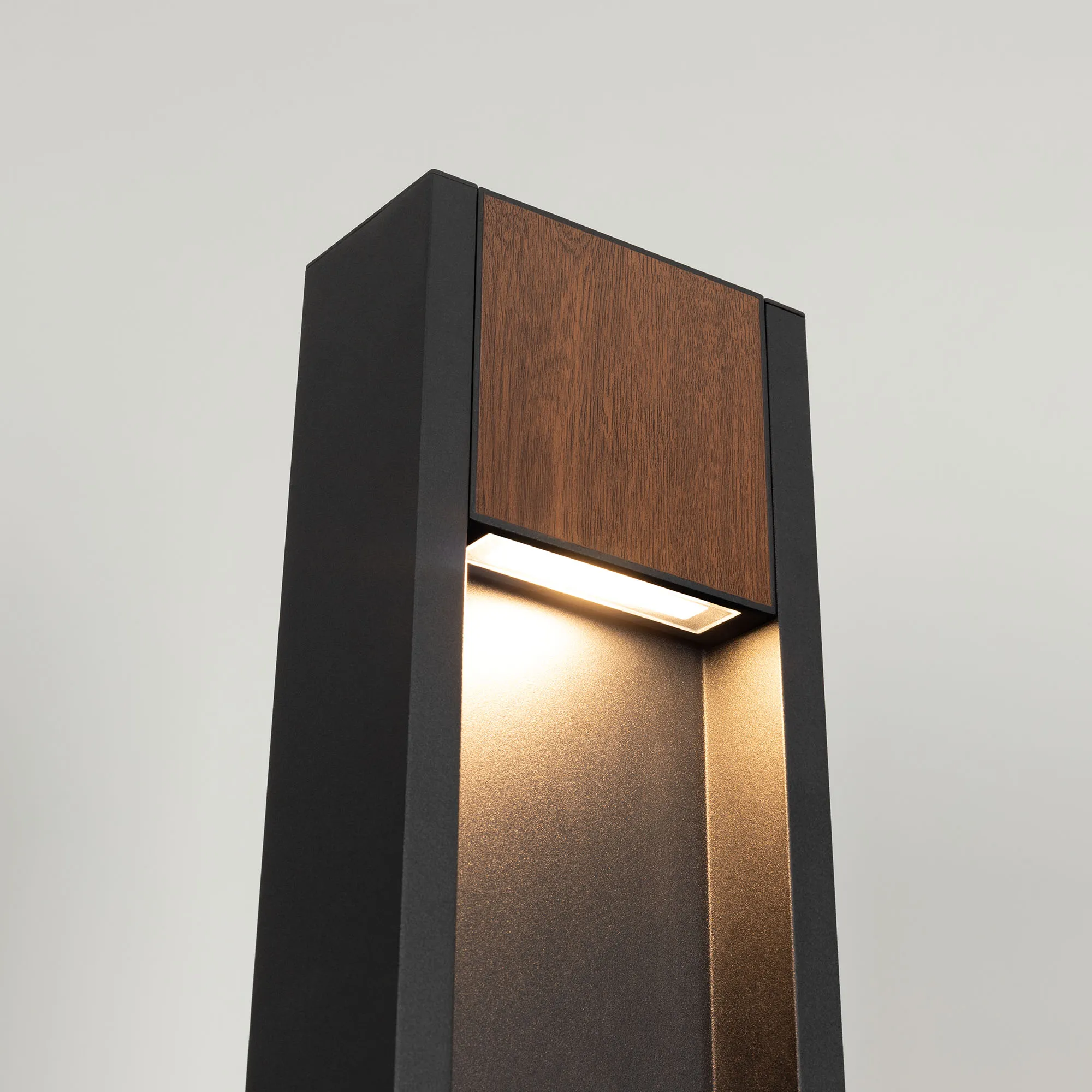 Уличный светодиодный светильник для освещения дорожек. Мощность 11 Вт. Цвет теплый белый 3000К, световой поток 471 лм, угол 120°. Влагозащищенный корпус - черный алюминий, экран из поликарбоната, розетка IP54. Питание 100-240 В, мощность 11 Вт. Размеры светильника ДхШхВ: 140х70х900 мм, размеры основания ДхШхВ: 170х100х5 мм. Монтаж накладной, комплект крепежа поставляется со светильником. С розеткой 230 В.