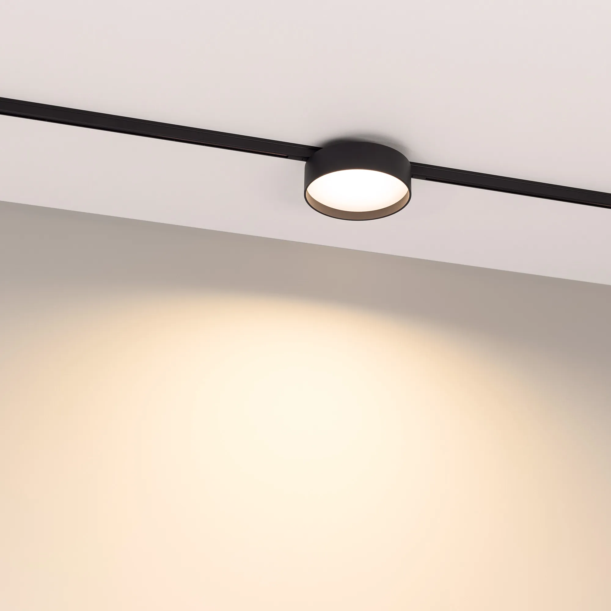 Поставка под заказ от 40 шт. Светильник для магнитных треков MAG-MICROCOSM шириной 11 мм. Мощность 12 Вт, св. поток 514 лм, 43 лм/Вт, ТЕПЛЫЙ 2700 K, CRI>90, угол 100°, напряжение питания 24 В. Черный круглый корпус из алюминия, экран поликарбонат, степень защиты IP20. Размер: диаметр 113 мм, высота 34 мм. Монтаж на трек MICROCOSM. Пульсация <1%. Управление яркостью осуществляется с помощью диммера по ШИМ (PWN).