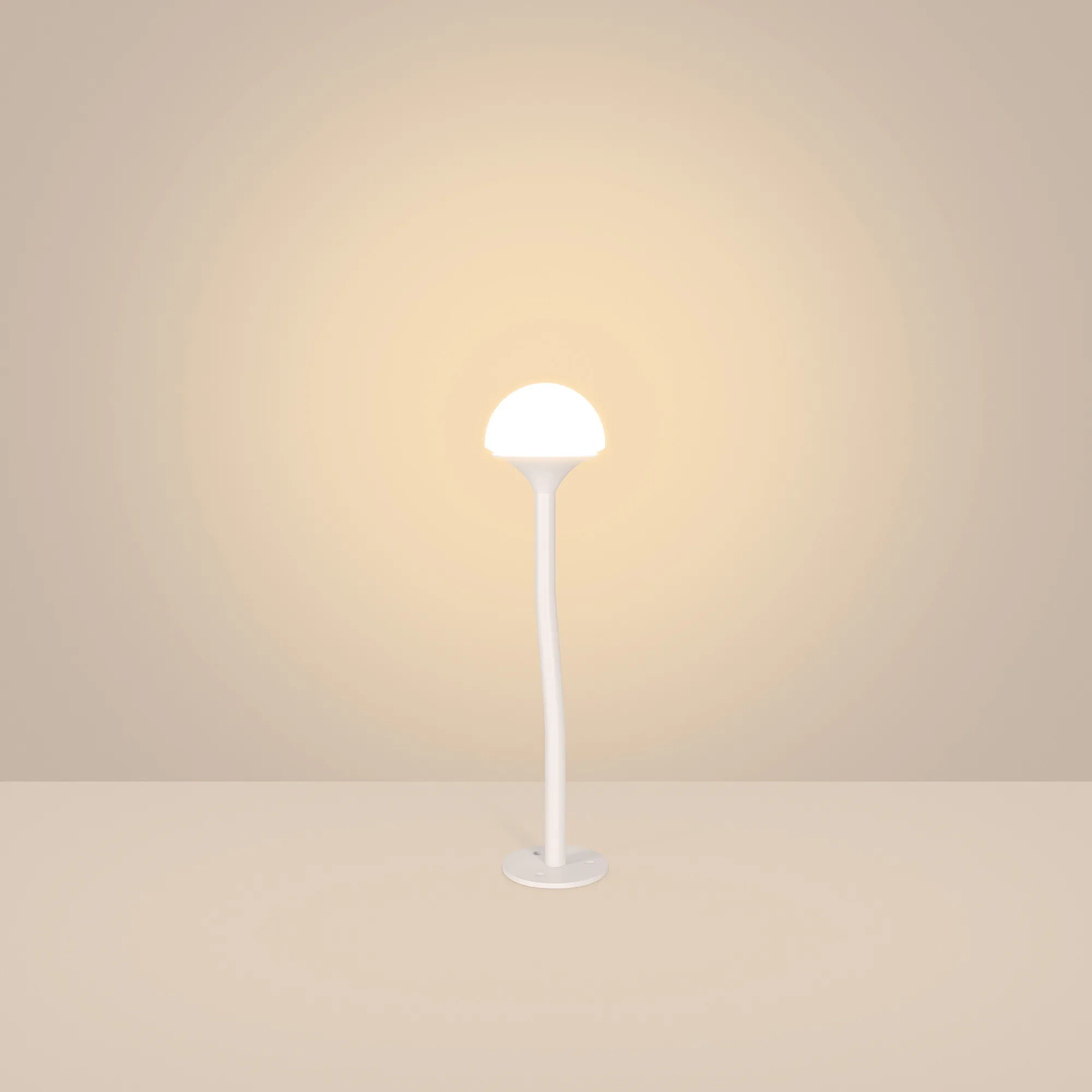 Уличный декоративный светодиодный светильник. Мощность 1 Вт, св. поток 111 лм, 122 лм/Вт, теплый 3000 K, CRI>80, угол излучения 85°, напряжение питания 24 В. Белый корпус из алюминия, прозрачный матовый рассеиватель из PMMA. Степень защиты IP65. Размер: диаметр 58 мм, высота 255 мм, высота углубления 155 мм. Монтаж в грунт с помощью основания пика (входит в комплект поставки). Драйвер приобретается отдельно.