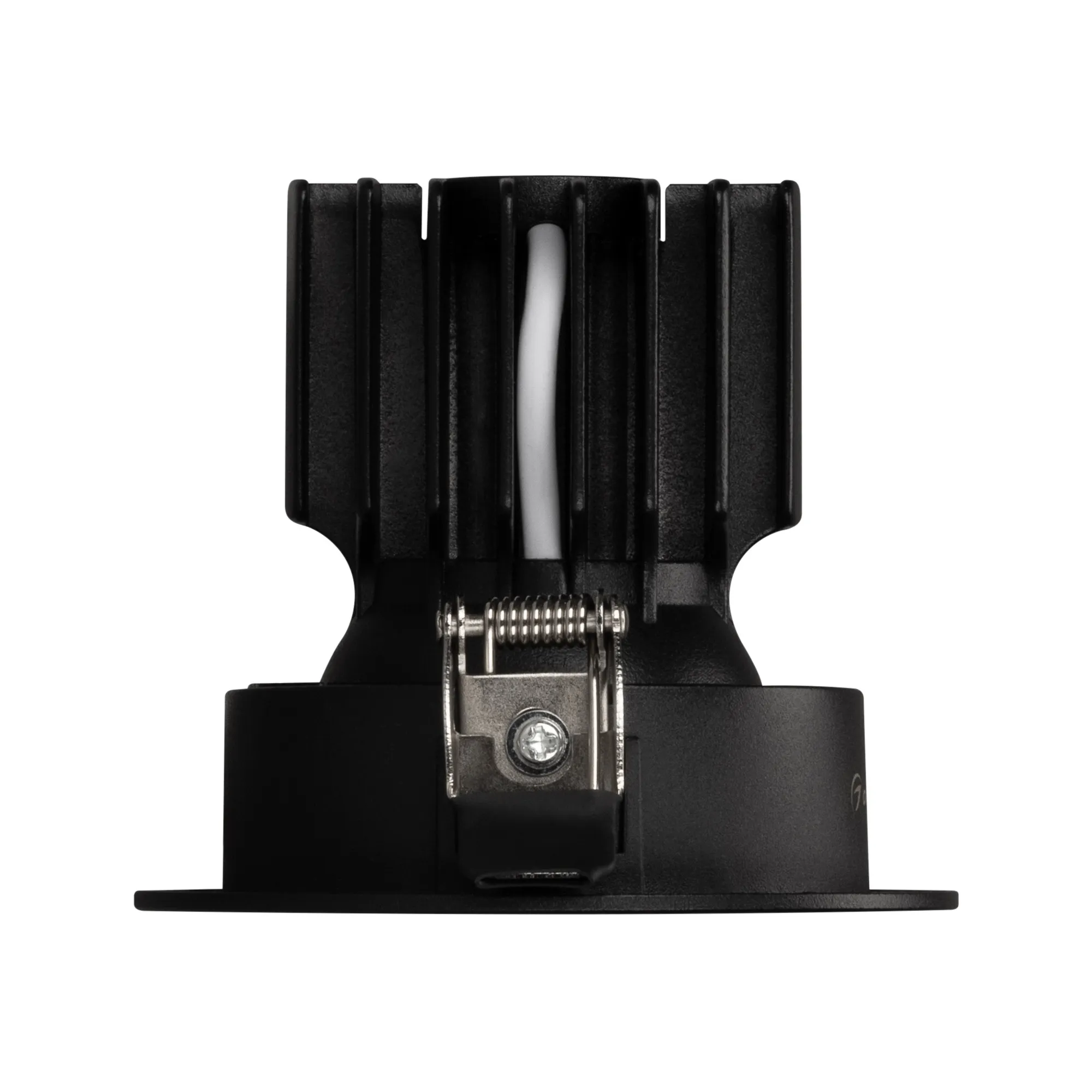 Встраиваемый карданный светильник. Мощность 12 Вт, св. поток 1394 лм, 116 лм/Вт, дневной 4000 K, CRI>92, угол 40°, напряжение питания 230 В. Чёрный корпус из алюминия, чёрная вставка, степень защиты IP20. Размер: диаметр 90мм, высота 80 мм. Монтаж встраиваемый, установочное отверстие: диаметр 75мм. Драйвер 27-40 В, 300 мА, пульсация <2%.