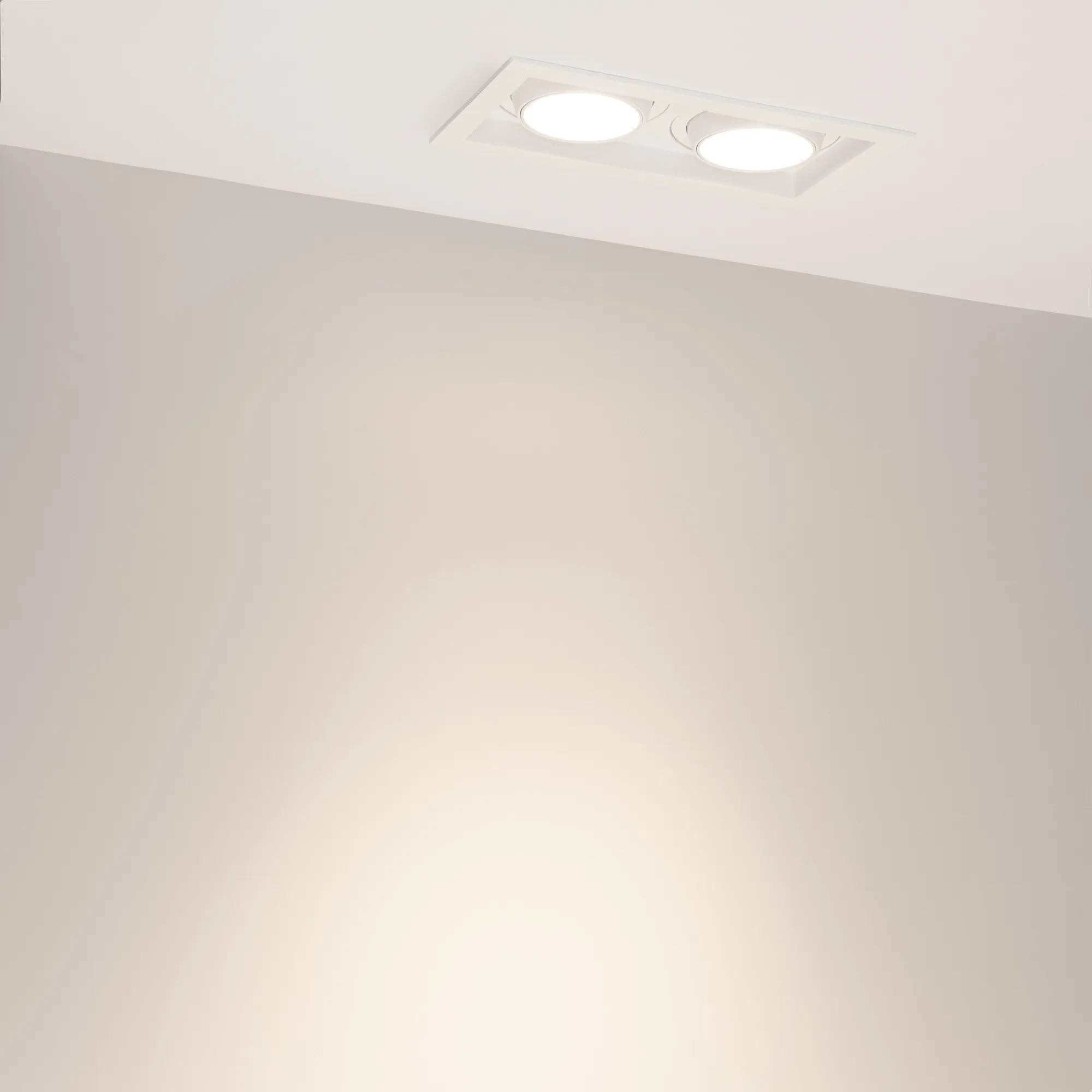 Встраиваемый карданный светильник. Мощность 2х20 Вт, св. поток 4264 лм, 106 лм/Вт, дневной 4000 K, CRI>92, угол 40°, напряжение питания 230 В. Белый корпус из алюминия, черная вставка, степень защиты IP20. Размер: длина 210 мм, ширина 117 мм, высота 105 мм. Монтаж встраиваемый, установочное отверстие: длина 190 мм, ширина 95 мм. Драйвер 24-42 В, 500 мА, пульсация <2%.