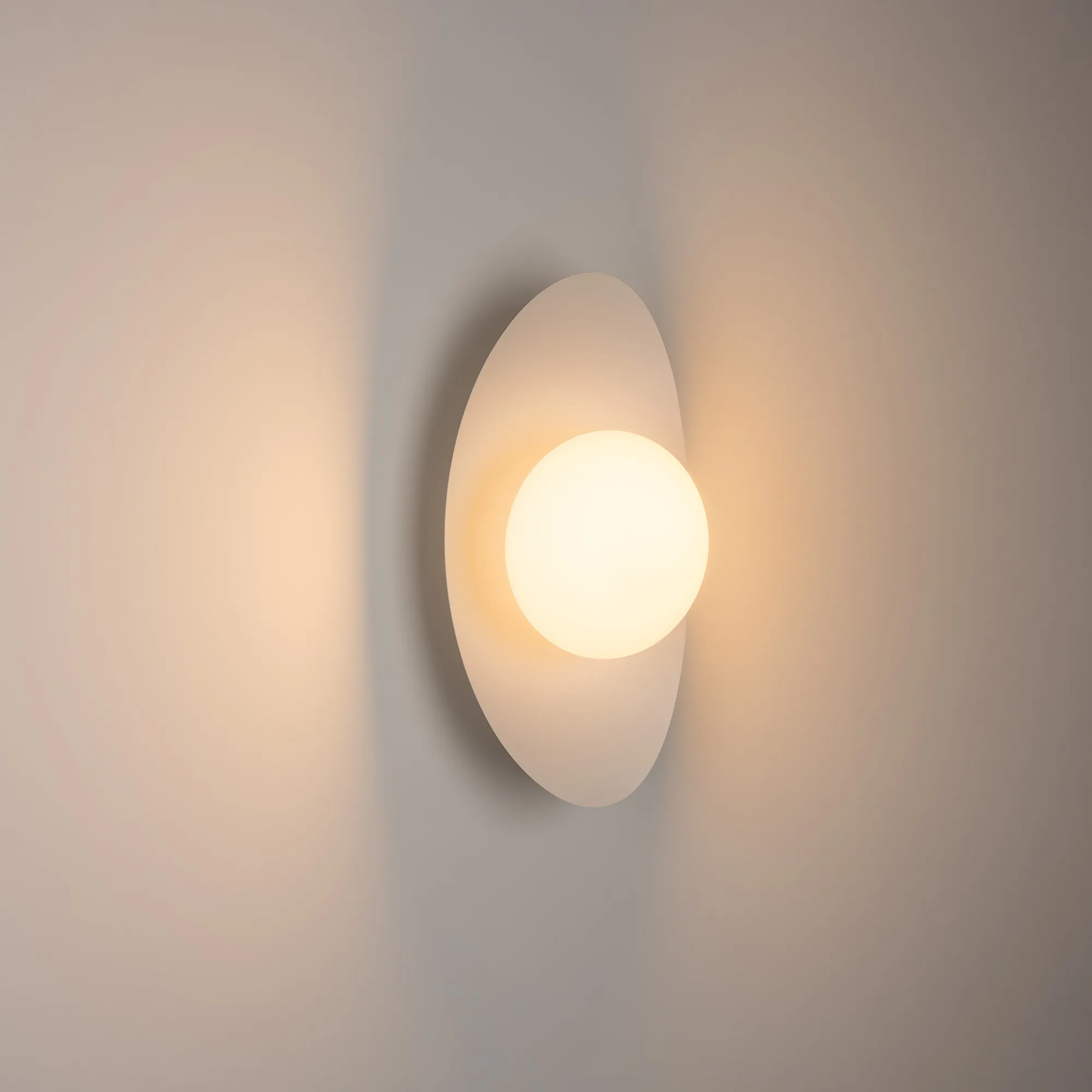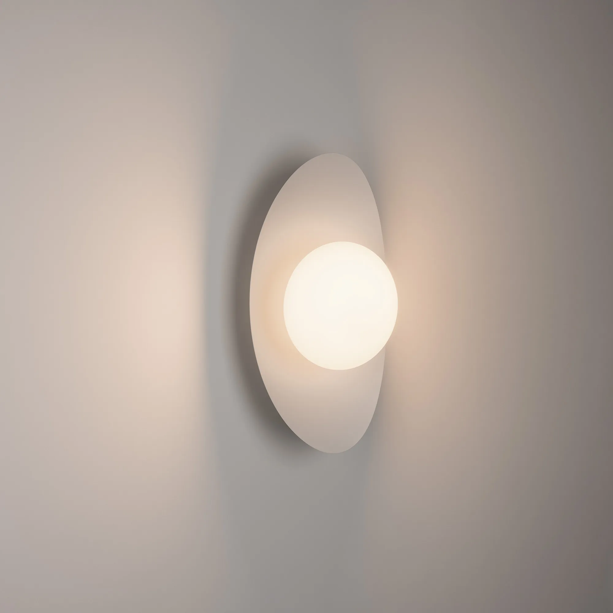 Декоративный настенный светильник. Мощность 6 Вт, св. поток 325-340 лм, 50-52 лм/Вт, теплый 2700 K,теплый 3200К, дневной 4000 K (переключаются) CRI>92, угол 150°, напряжение питания 230 В. Фигурный корпус из алюминия белого цвета, экран из матового стекла, степень защиты IP20. Размер: габариты световой части: Ø145x70 мм, габариты чаши: Ø110 x 42 мм. Монтаж накладной. Встроенный блок питания: 12В DC, 0,75 А, пульсация <2%. Встроенный диммер TOUCH-DIM.