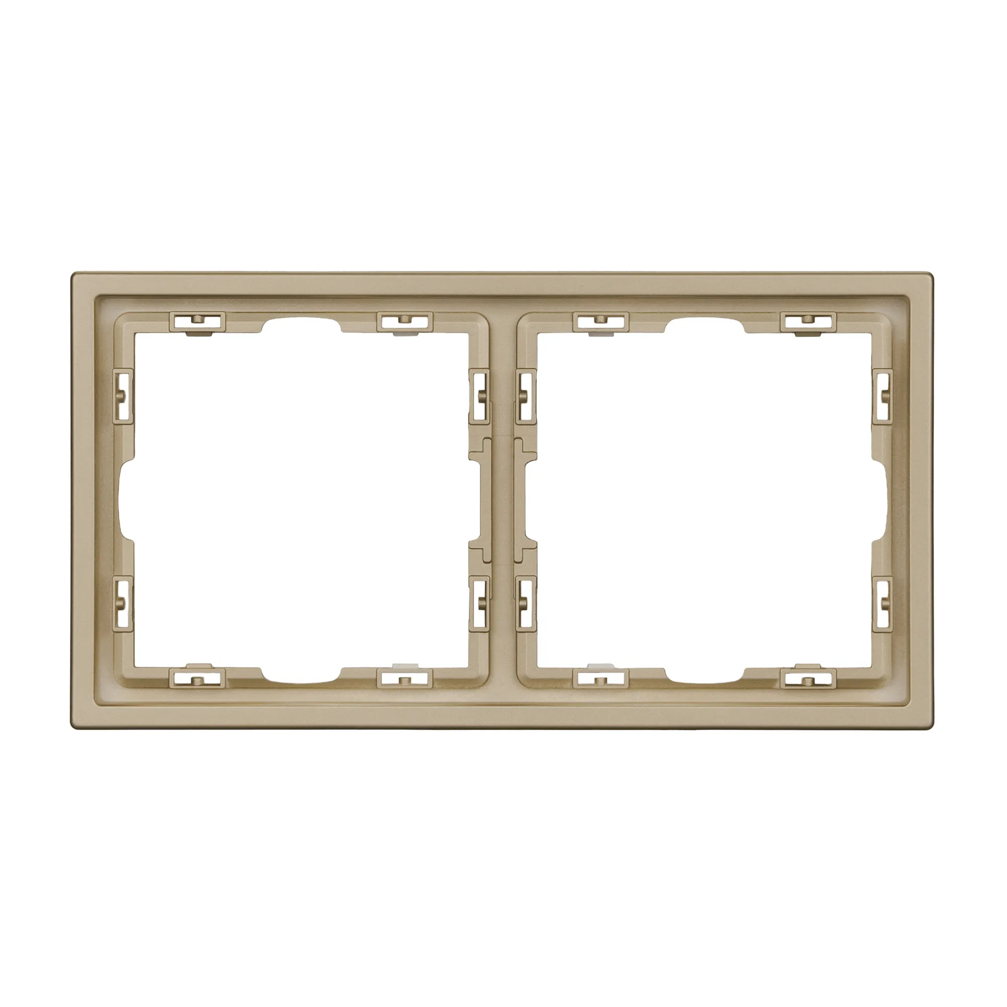 Рамка пластиковая на 2 поста, под встраиваемый механизм. Цвет - золотой песок, с Soft-Touch покрытием. Среднего уровня герметичности IP20. Ориентация монтажа горизонтальная.