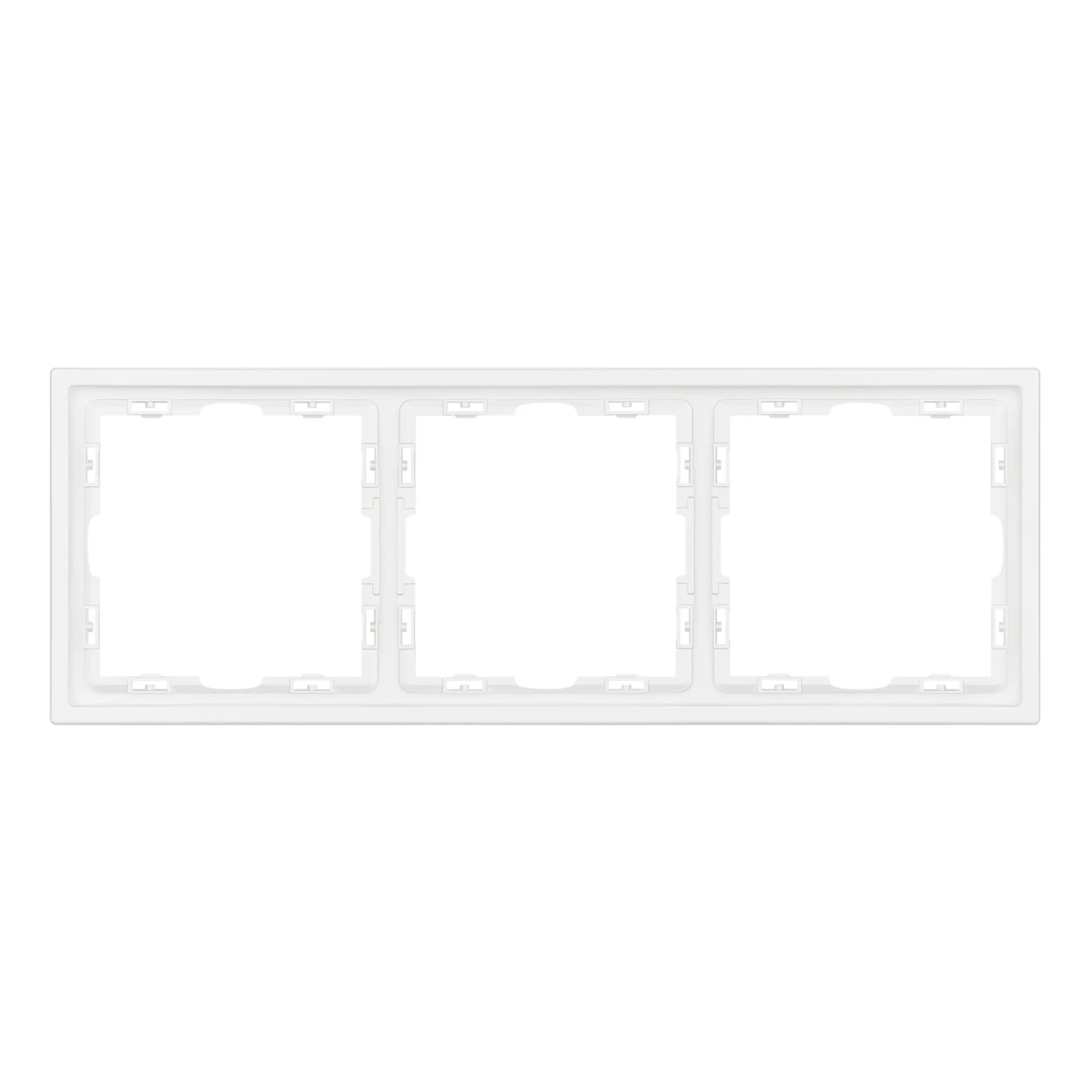 Рамка пластиковая на 3 поста, под встраиваемый механизм. Цвет - белый кварц, с Soft-Touch покрытием. Среднего уровня герметичности IP20. Ориентация монтажа горизонтальная.