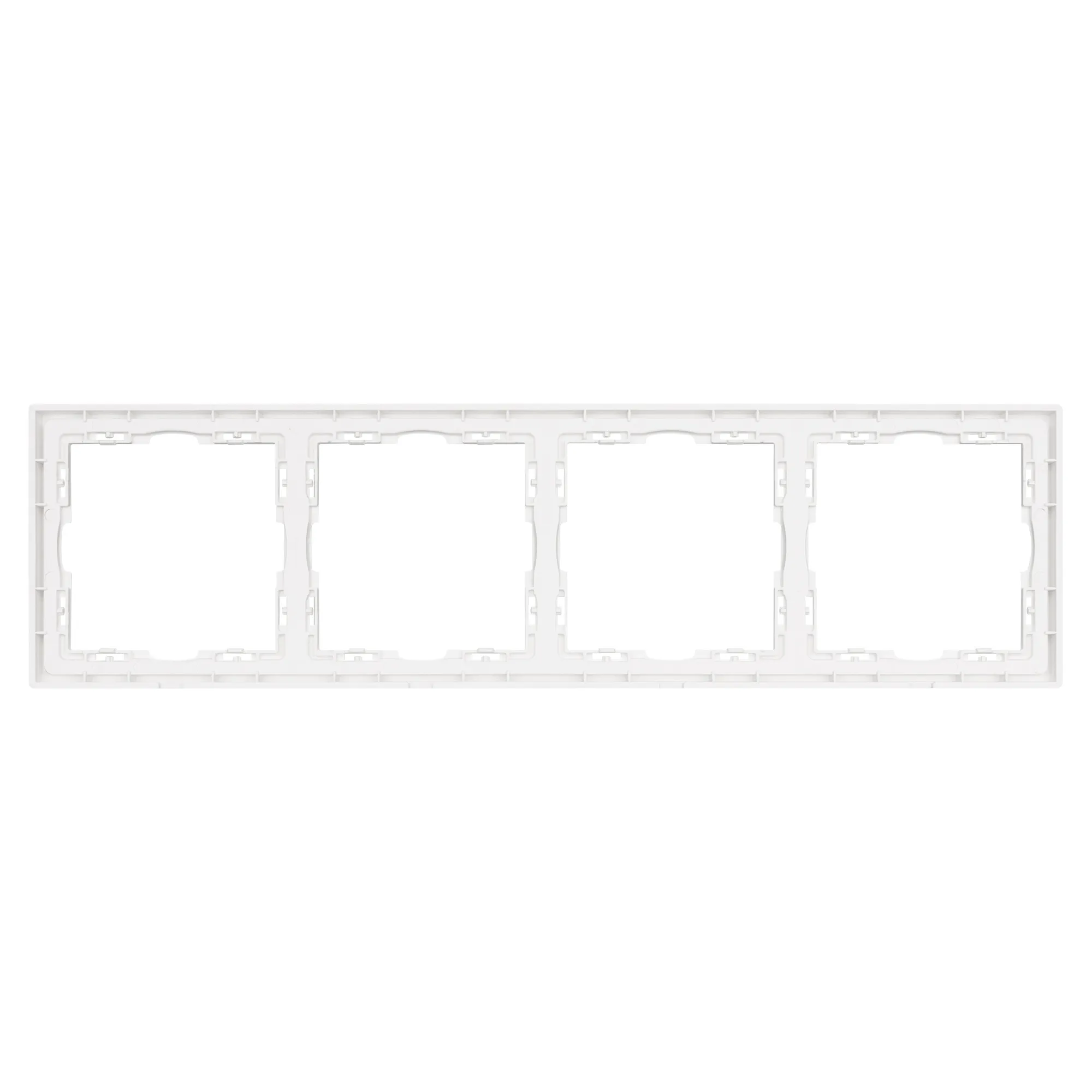 Рамка пластиковая на 4 поста, под встраиваемый механизм. Цвет - белый кварц, с Soft-Touch покрытием. Среднего уровня герметичности IP20. Ориентация монтажа горизонтальная.