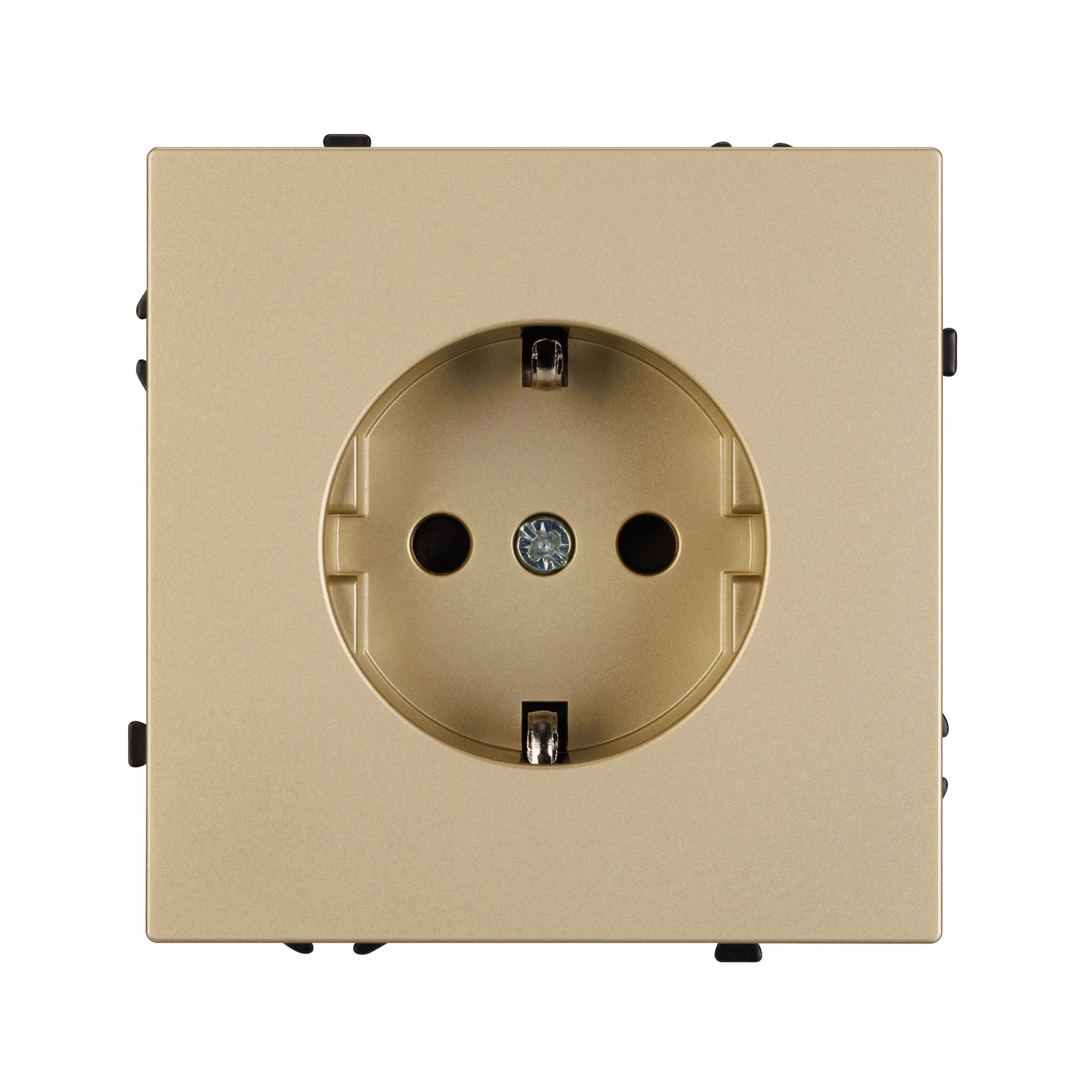 Механизм розетки с заземлением на 1 пост. Цвет - золотой песок, с Soft-Touch покрытием. Без фронтальной рамки. Уровень пылевлагозащиты IP20. Розетка устанавливается в стандартный подрозетник круглого сечения диаметром 60мм.