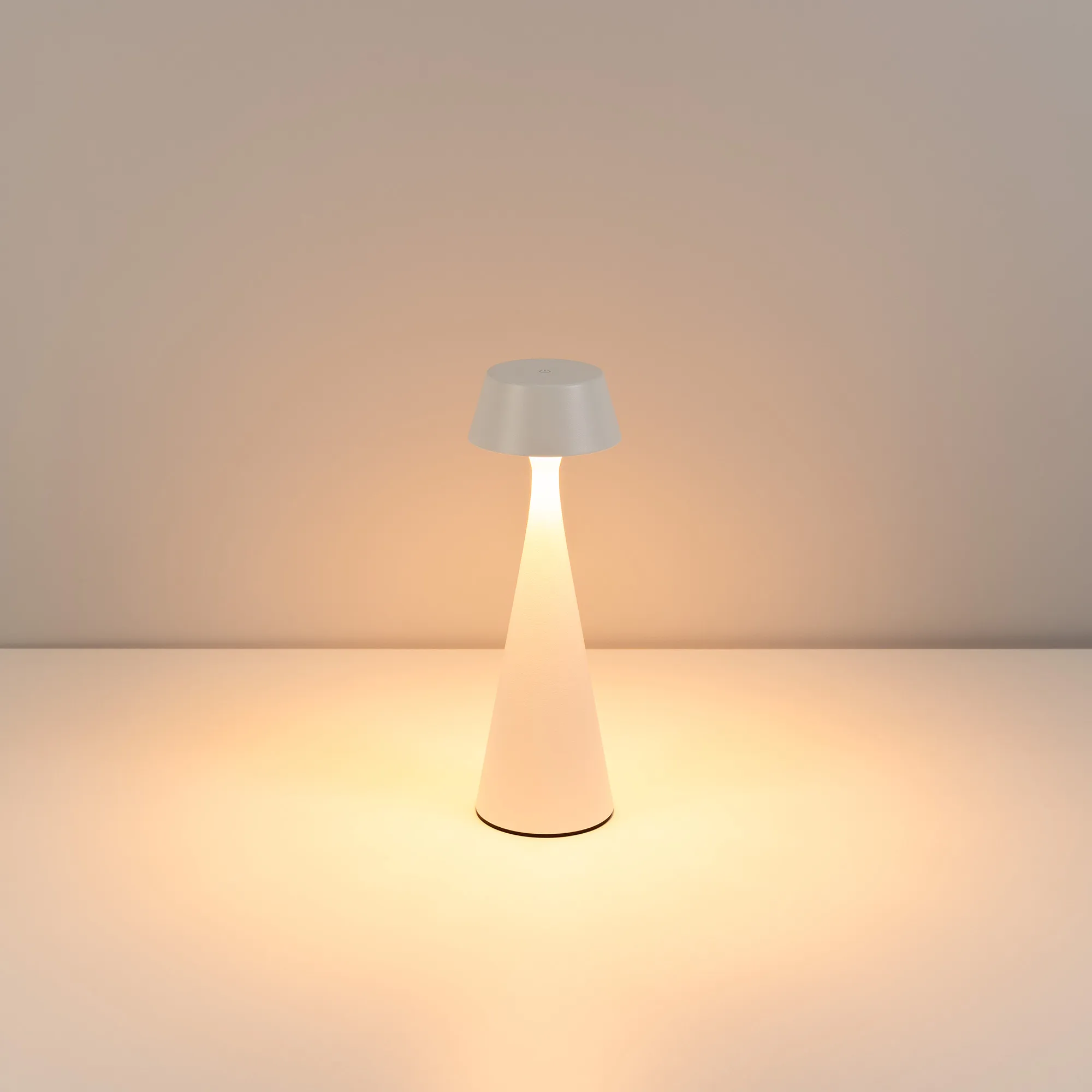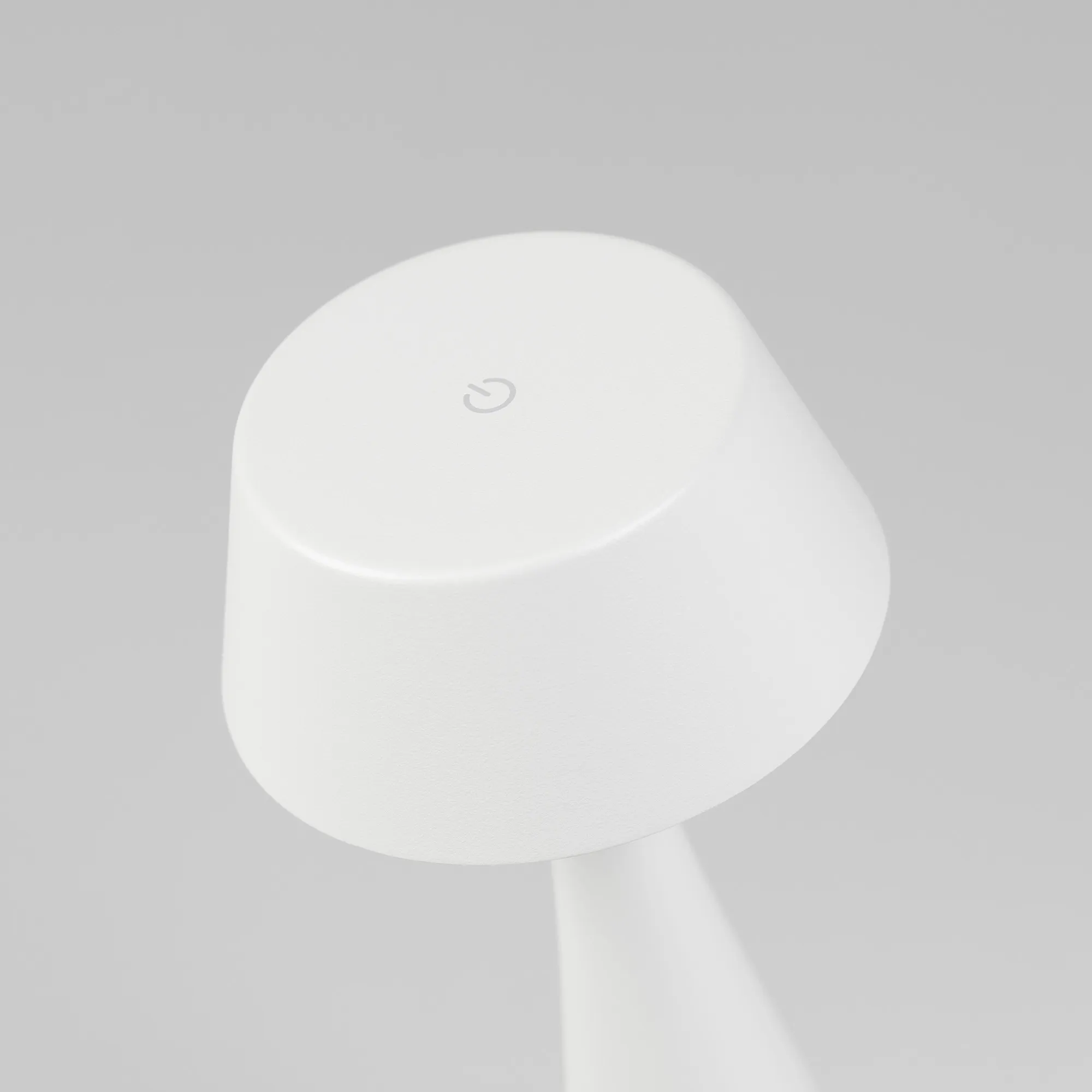 Настольный светильник со встроенным аккумулятором, 2Вт, алюминиевый корпус, цвет зеленый. Цвет ТЕПЛЫЙ БЕЛЫЙ 2200-2700-3000K, св.поток 110-130 лм, CRI(Ra)>80, угол 154°. Размер Ф80x242мм. IP54. Зарядка от сети переменного тока AC220-240V. Тип встроенного аккумулятора 2x2200мАч Li-ion, напряжение батареи 5V