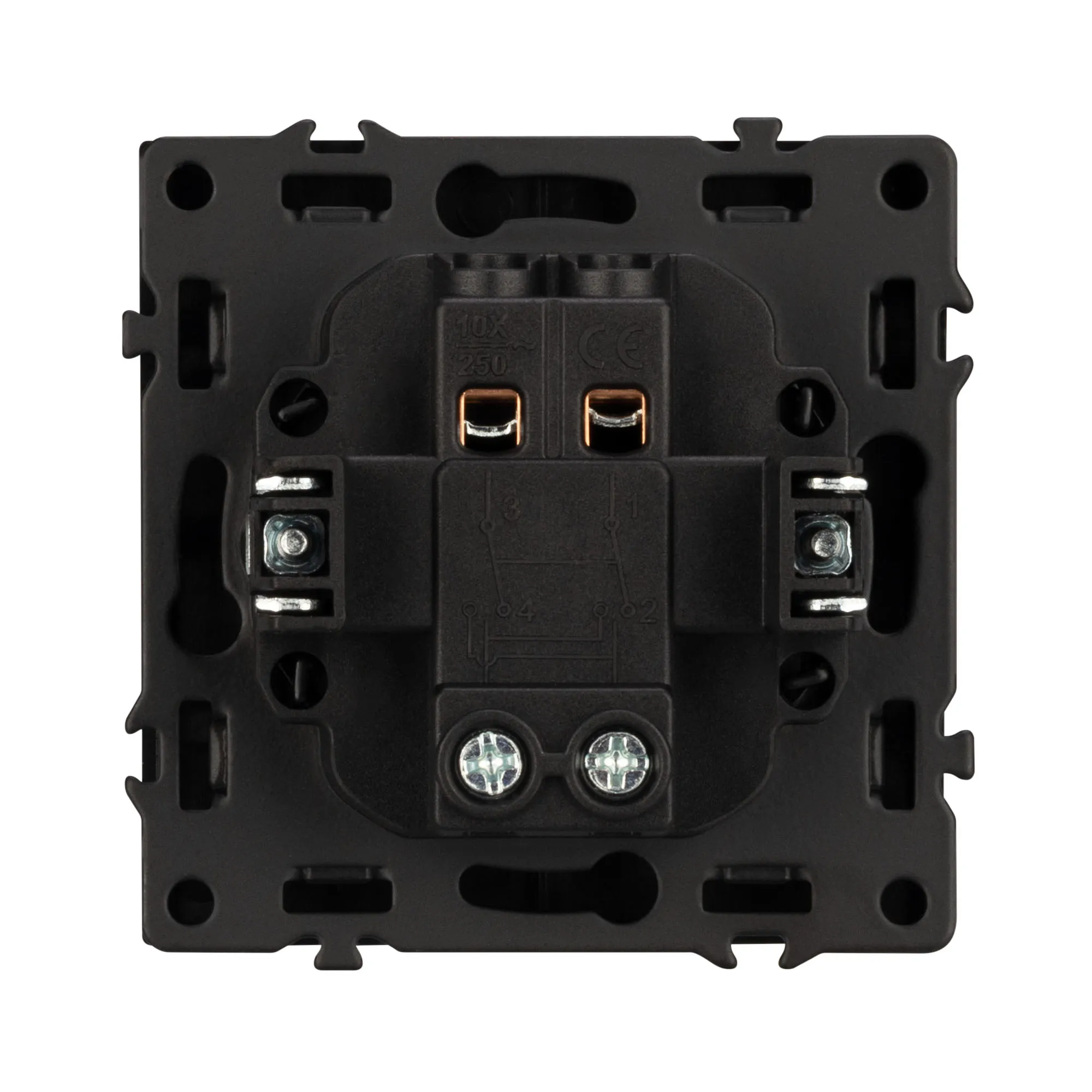 Механизм выключателя света клавишный на 1 пост 1 клавиша (перекрёстный). Цвет - серый, с Soft-Touch покрытием. Без фронтальной рамки. Уровень пылевлагозащиты IP20. Выключатель устанавливается в стандартный круглый подрозетник круглого сечения диаметром 60мм.