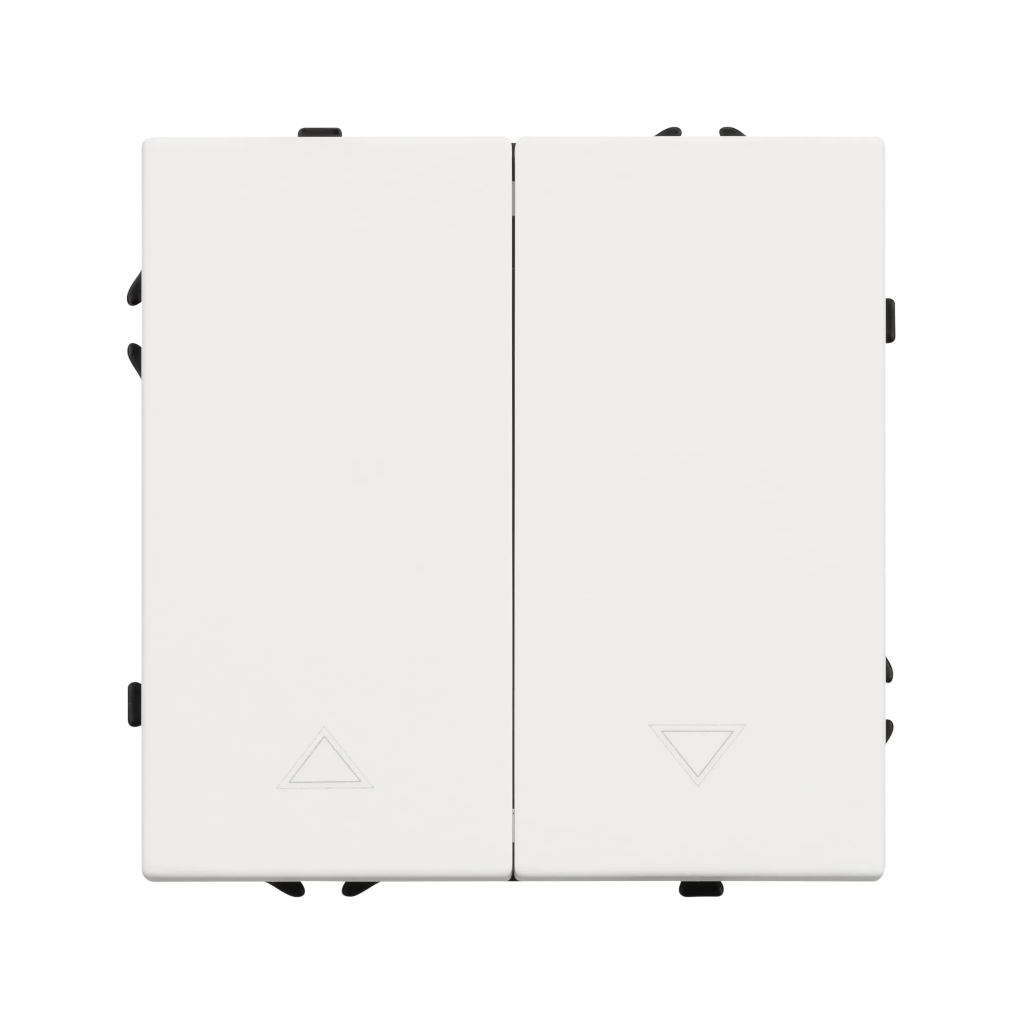 Механизм выключателя управления шторами на 1 пост 2 перекидные клавиши. Цвет - белый, с Soft-Touch покрытием. Без фронтальной рамки. Уровень пылевлагозащиты IP20. Выключатель устанавливается в стандартный круглый подрозетник круглого сечения диаметром 60мм.