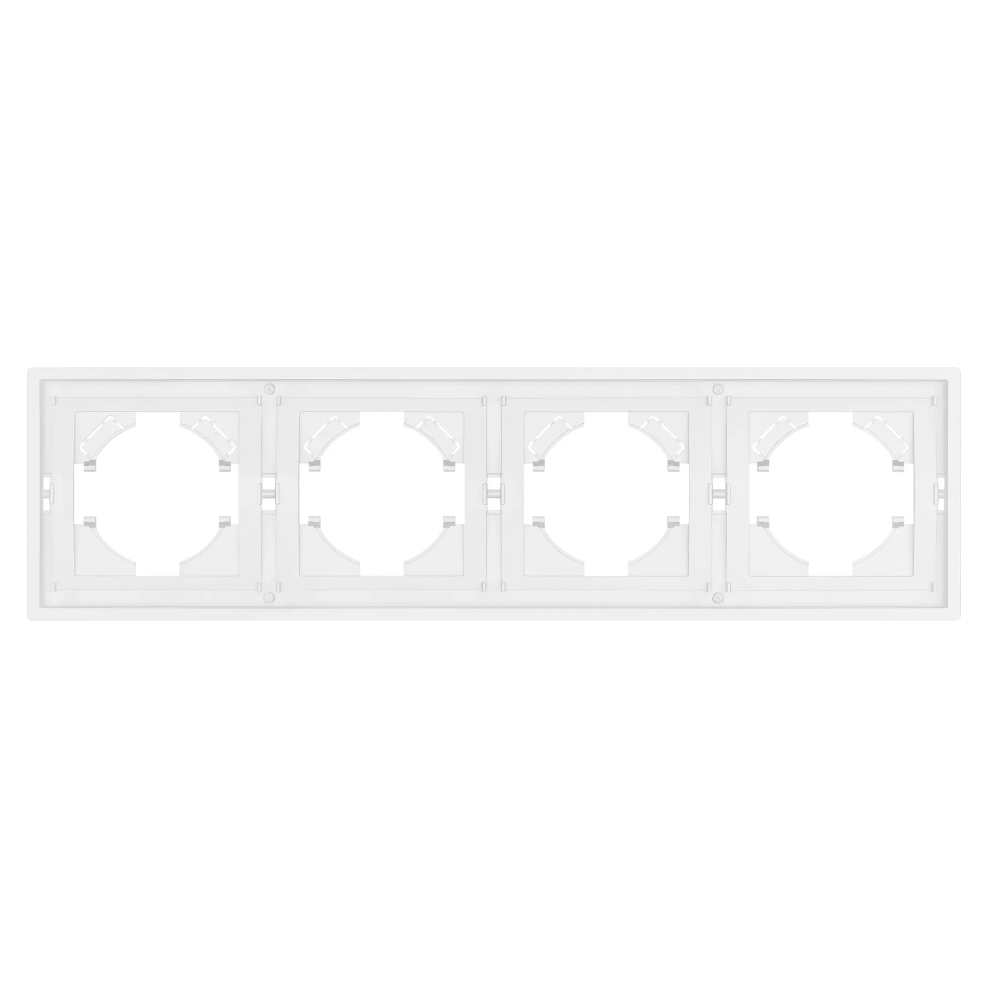 Рамка пластиковая на 4 поста, под встраиваемый механизм. Цвет - белый. Уровень герметичности IP20. Ориентация монтажа горизонтальная.