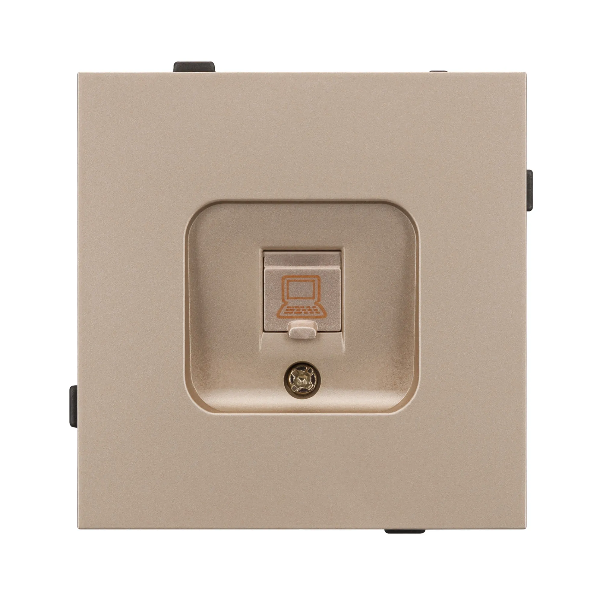 Механизм компьютерной розетки на 1 пост 6-й категории. Цвет - песочный. Без фронтальной рамки. Уровень пылевлагозащиты IP20. Розетка устанавливается в стандартный подрозетник круглого сечения диаметром 60мм.