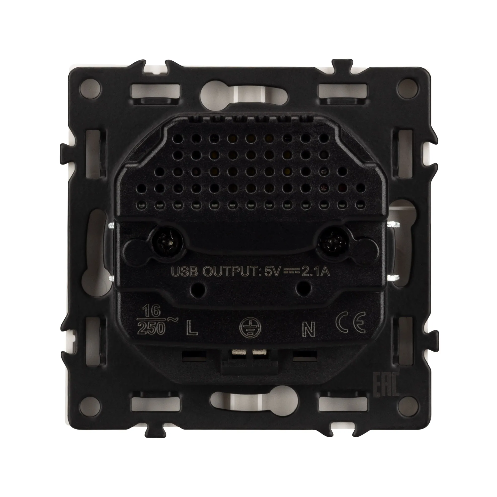Механизм розетки с заземлением на 1 пост и 2USB Type A порта. Цвет - кашемир, с Soft-Touch поверхностью. Без фронтальной рамки. Уровень пылевлагозащиты IP20. Розетка устанавливается в стандартный подрозетник круглого сечения диаметром 60мм.