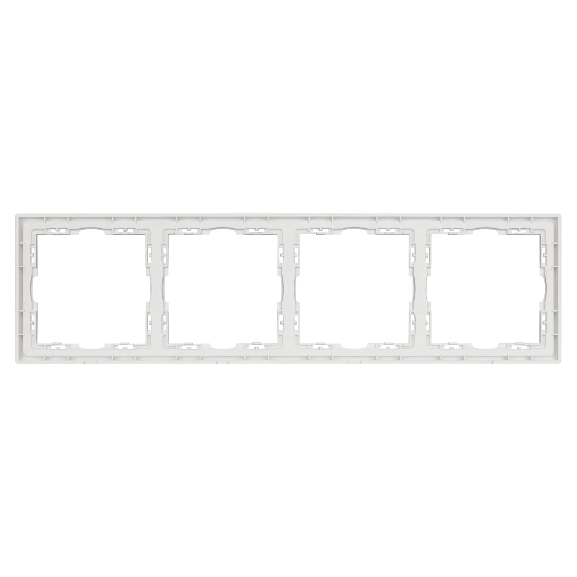 Рамка пластиковая на 4 поста, под встраиваемый механизм. Цвет - никель, с Soft-Touch поверхностью. Среднего уровня герметичности IP20. Ориентация монтажа горизонтальная.