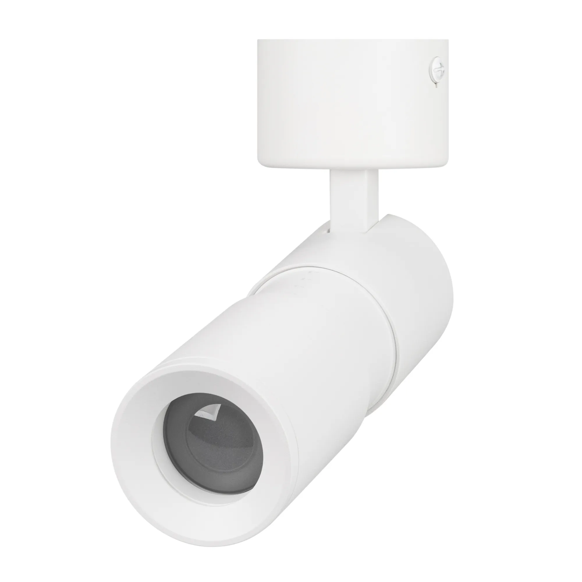 Накладной откидной поворотный светильник, 12Вт. Цвет свечения ТЕПЛЫЙ 2700K, световой поток 720 лм, 60 лм/Вт, регулируемый угол 8-80°, CRI>90. Корпус круглый, металл, цвет белый, IP20. Размеры DxHxL Ø55x132~163,5 мм. Размер чаши Ø60,7x33,5 мм. Входное напряжение AC220-240V, мощность 12Вт. Драйвер встроенный (24-40V, 300 мА). Пульсация <1%.