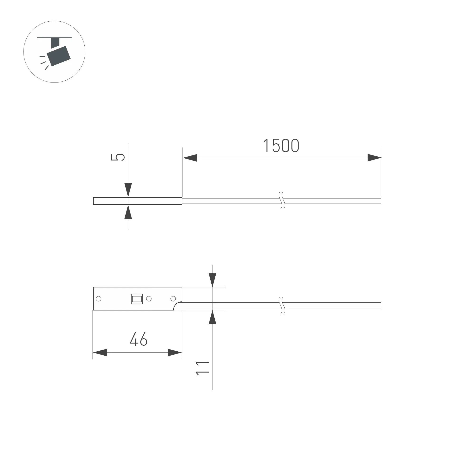 Коннектор подвода питания для треков MAG-MICROCOSM. Цвет белый. Кабель в комплекте. Длина кабеля 1.5 м, DC24V. Габариты 61х5х10.8 мм.