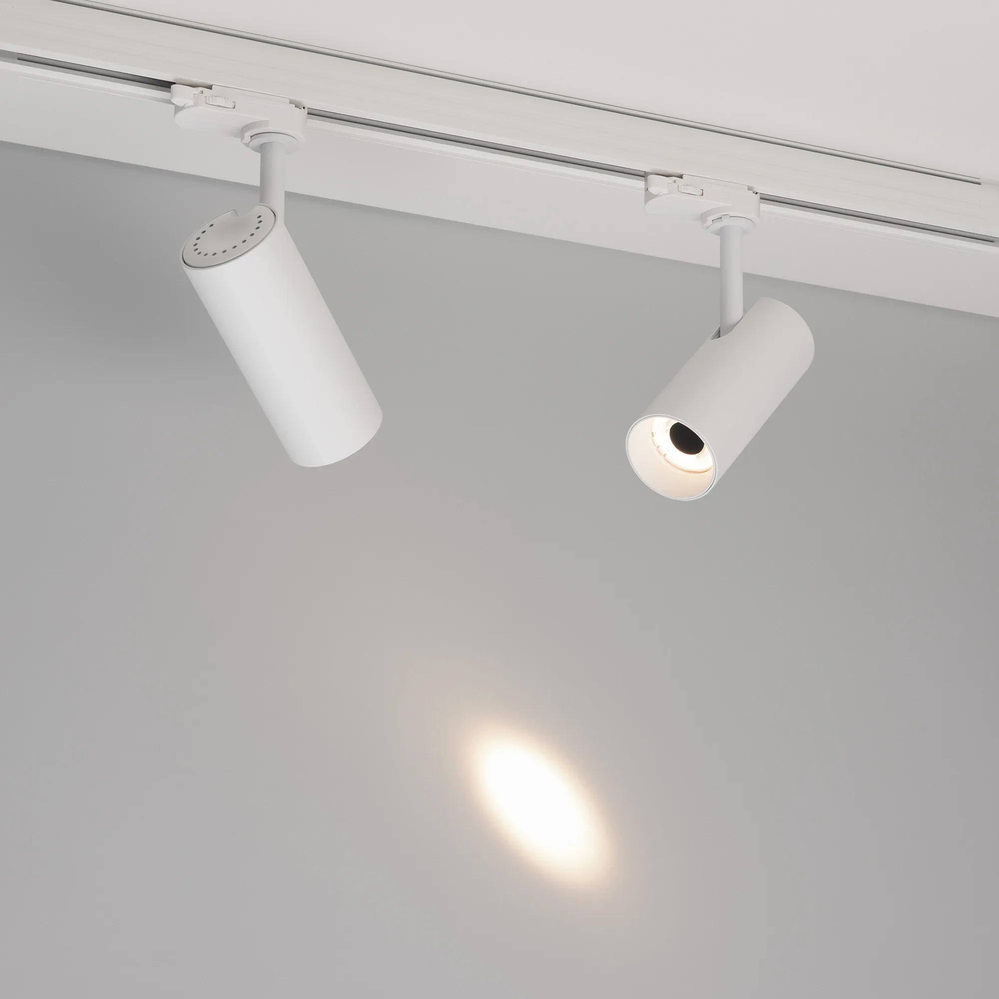 Светильник для треков/шин 4 провода. Мощность 4 Вт, св. поток 95 лм, 23 лм/Вт, дневной 4000 K, CRI>90, угол 4°, напряжение питания 230 В. Белый круглый корпус из алюминия, материал линзы PMMA, степень защиты IP20. Размер: диаметр 55 мм, длина световой части 131 мм. Монтаж на трек 3-фазный. Драйвер встроенный 2-4 В, 700мА., пульсация <1%